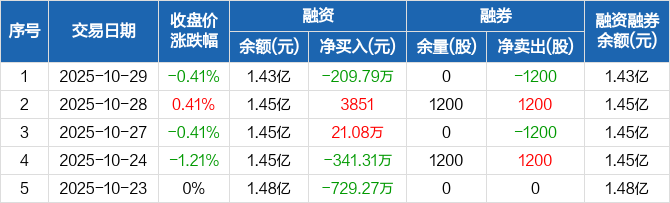 好当家:融资净偿还209.79万元,融资余额1.43亿元(10-29)