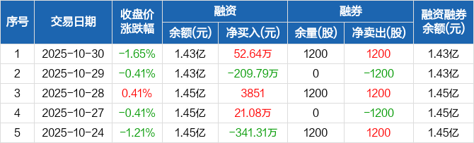 好当家:融资净买入52.64万元,融资余额1.43亿元(10-30)