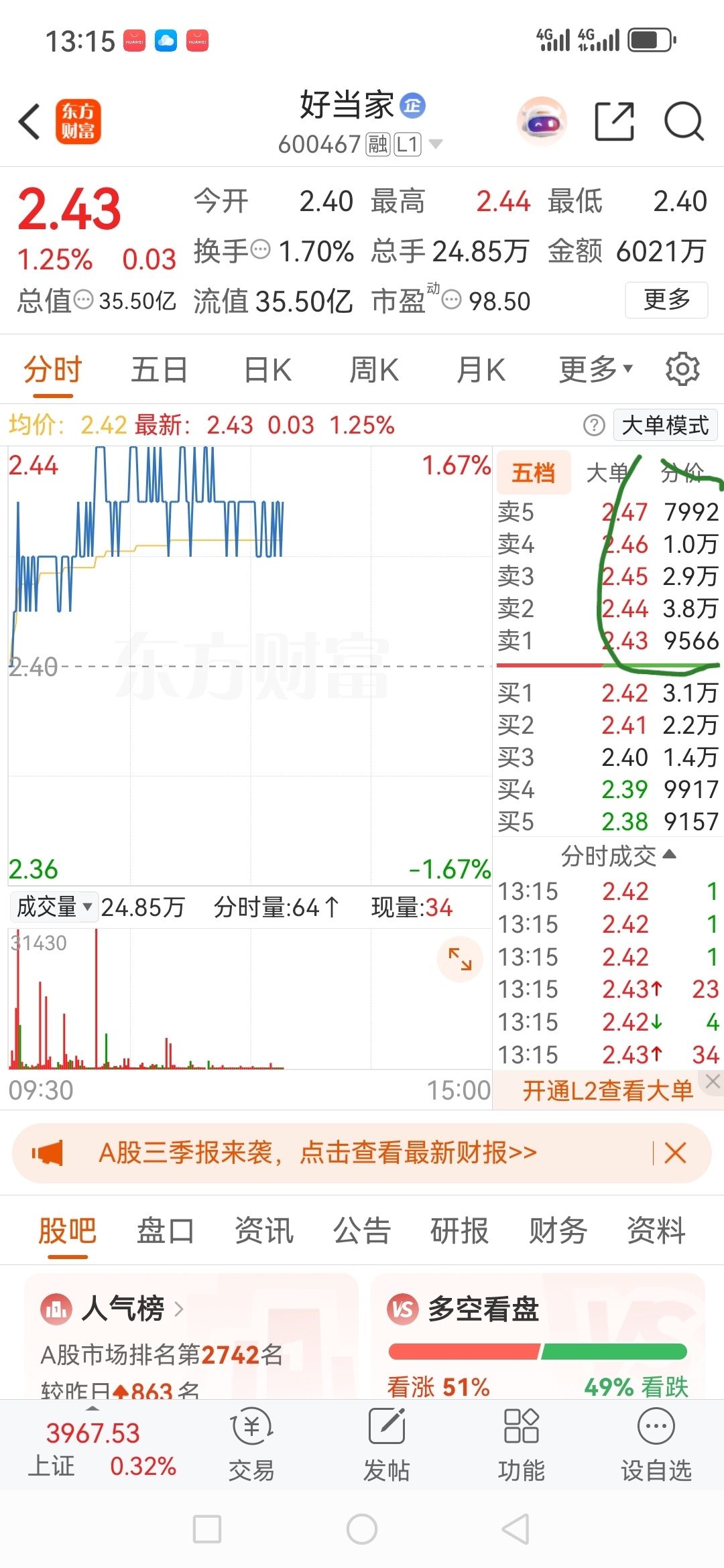 $好当家(SH600467)$ 卡脖子的抛压盘,不打掉就要大跌