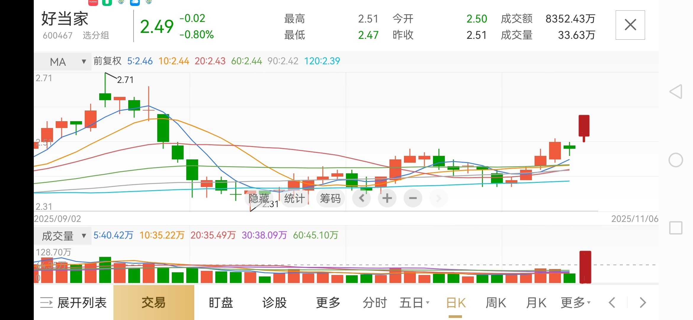 $好当家(SH600467)$ 明天开盘放量大涨,大家看看我猜的对不对,