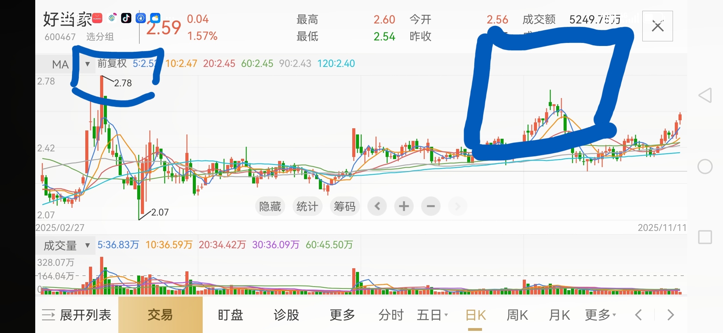 $好当家(SH600467)$ 双顶形态,到头了,马上大跌回调,2.4左右马上到了