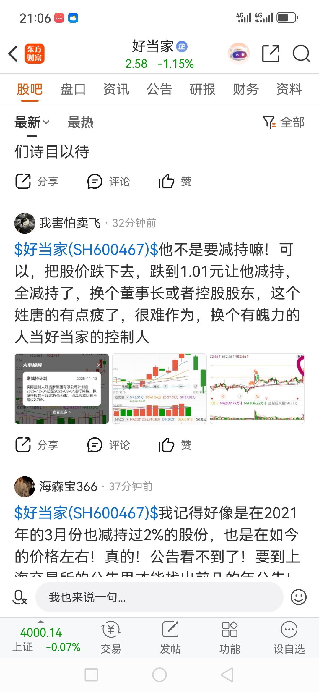 $好当家(SH600467)$ 砸下来,砸到1.01元左右让他减持