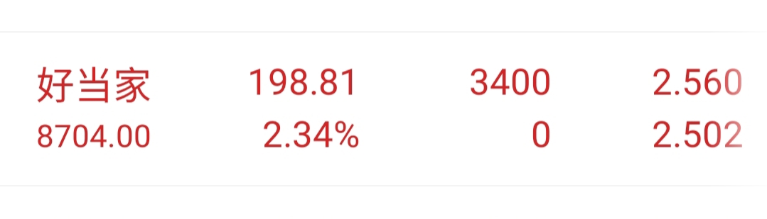 $好当家(SH600467)$ 2.5元买2万股只成交了3400股,明天计划在2.62元抛出。