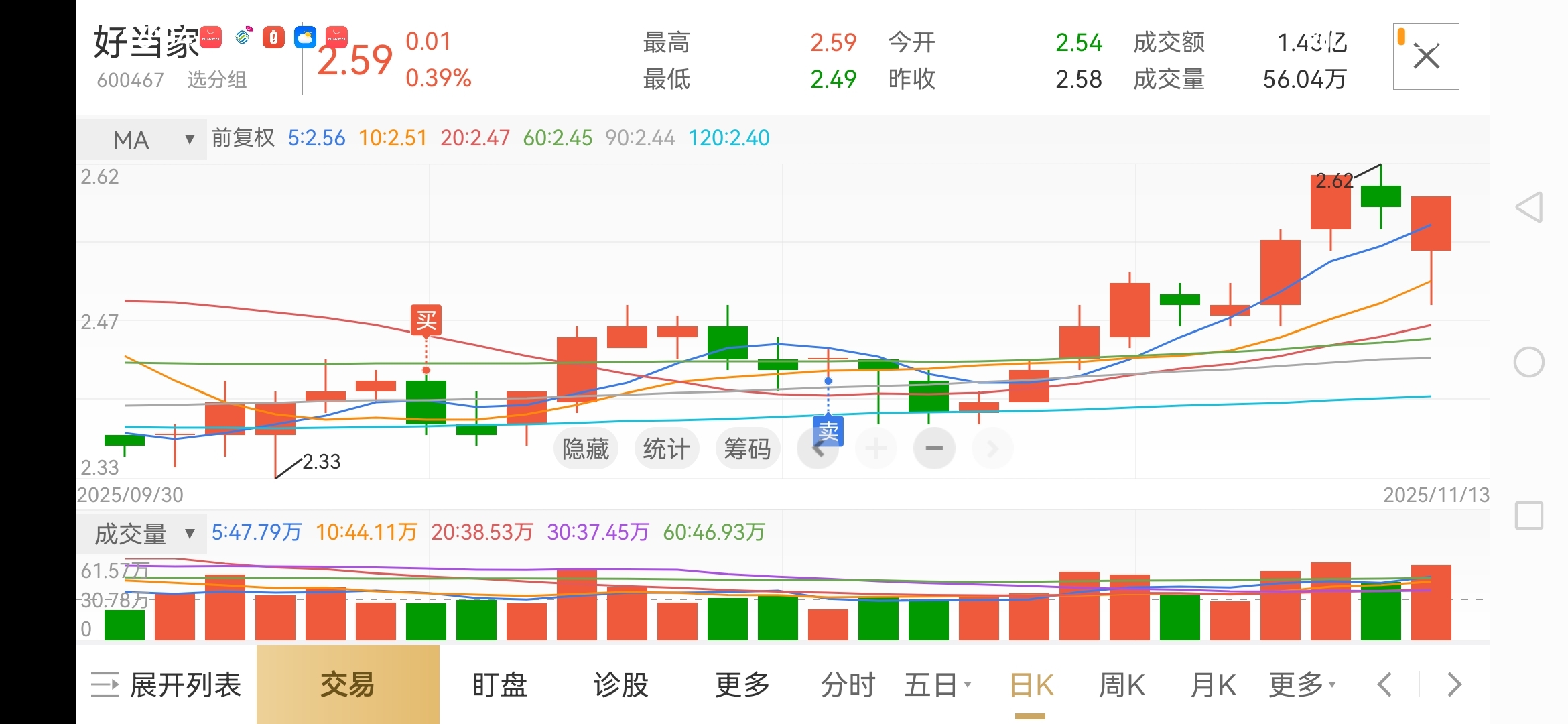 $好当家(SH600467)$ 买的点位不错,就是经不起折腾,经不起打压洗盘,一磨就把我搞出去了,还小亏几百块,希望明天倒栽葱暴跌下杀跌停板,让我接回来,减持是利空,为什么今天不狠狠的暴跌,那就明天倒栽葱暴跌下杀,杀出一帮人的带血筹码,让我接一点回来。