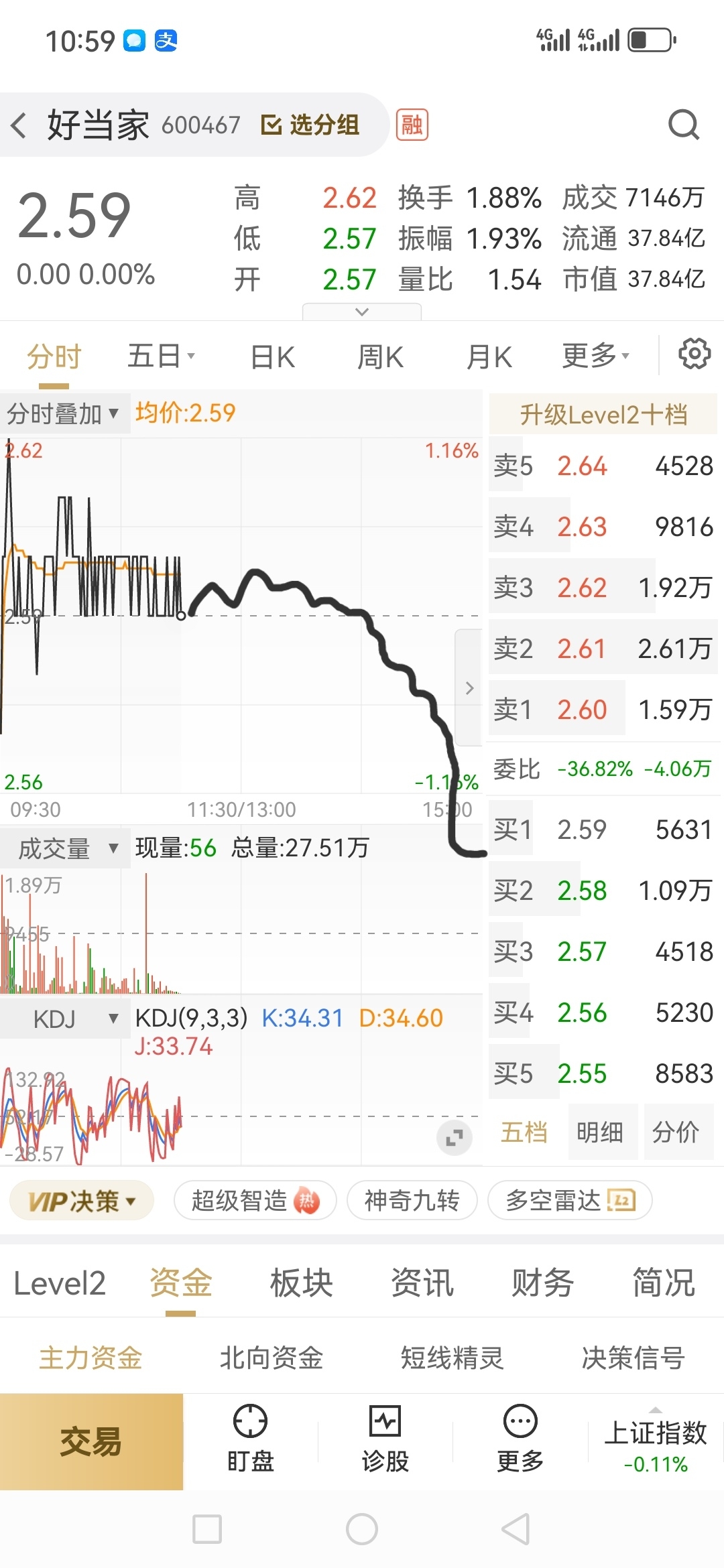 $好当家(SH600467)$ 下午暴跌下杀,倒栽葱暴跌下杀跌停板