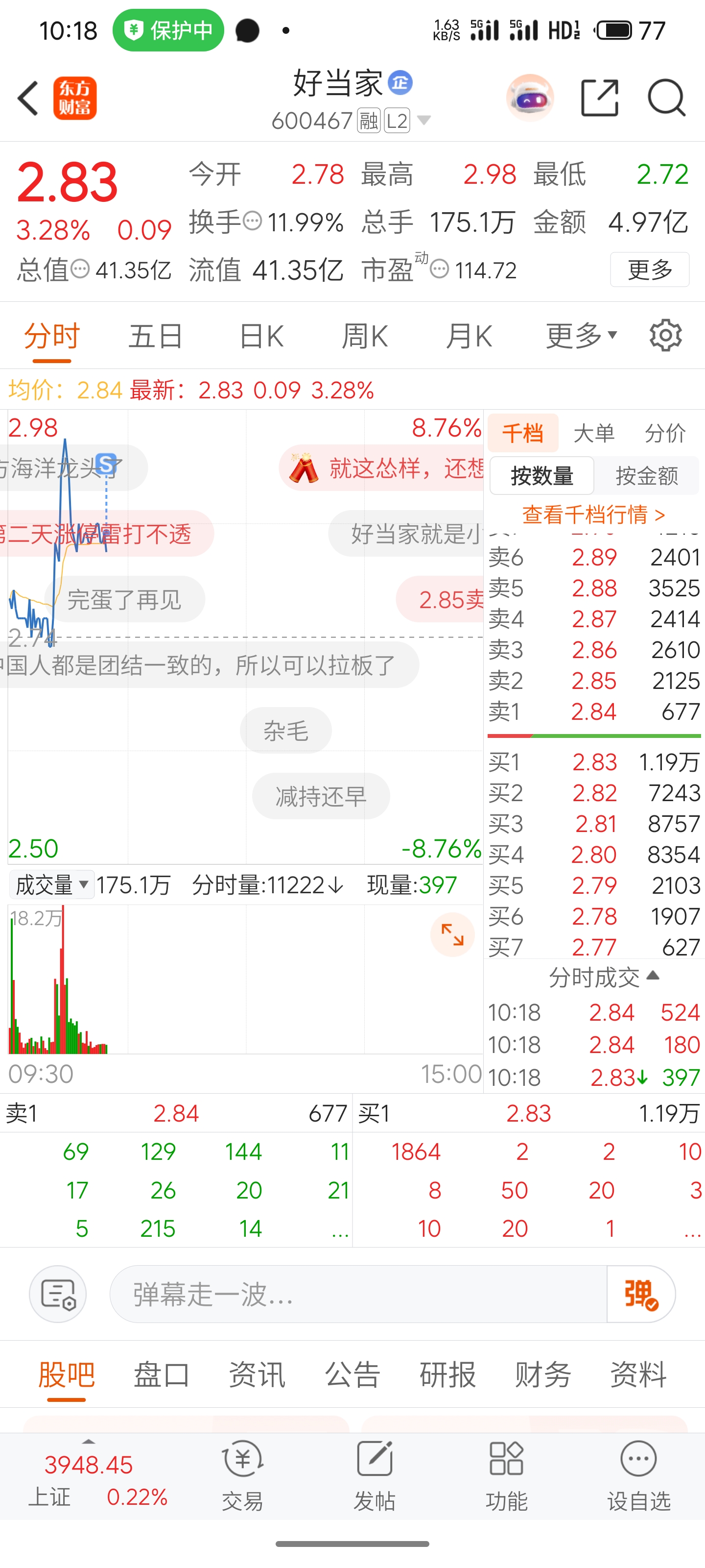$好当家(SH600467)$ 8%没卖,不涨停,格局到现在,4%卖了,庄家真没实力