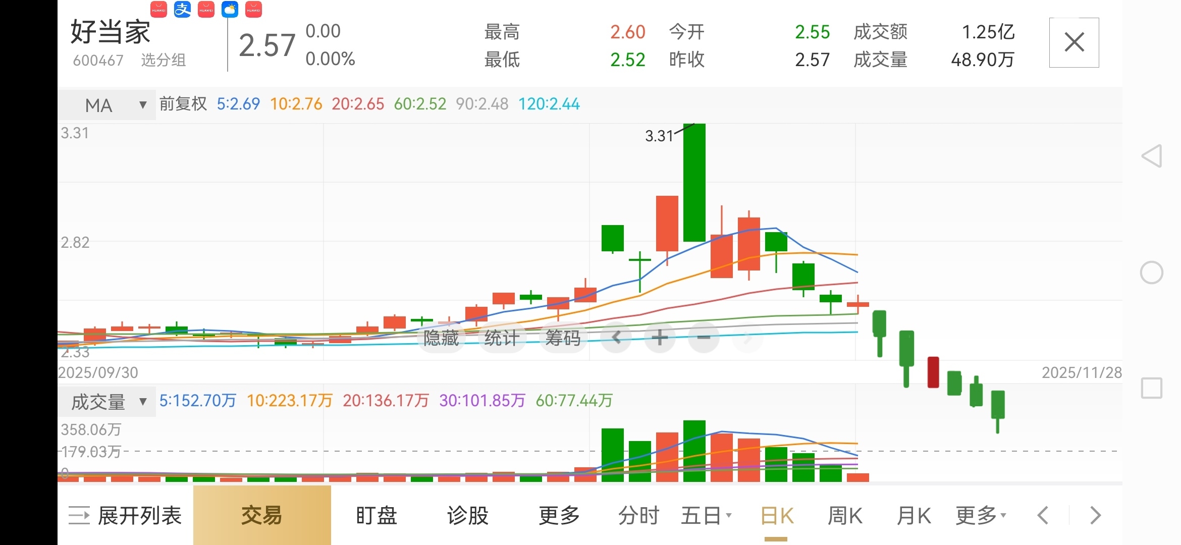 $好当家(SH600467)$ 继续暴跌下杀跌停来几个………好当家只是下跌中的小反弹