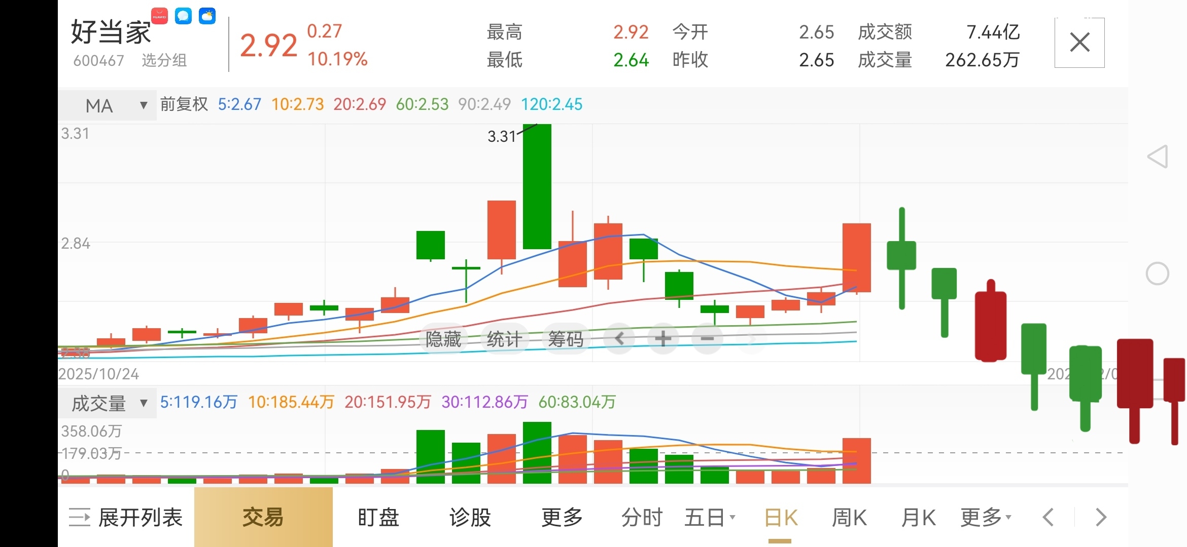 $好当家(SH600467)$ 开盘倒栽葱暴跌下杀,洗个盘,给个机会上车,让低位那些买进的获利盘跑了,高位3.3的套路盘惊慌恐惧中卖出,一举两得,