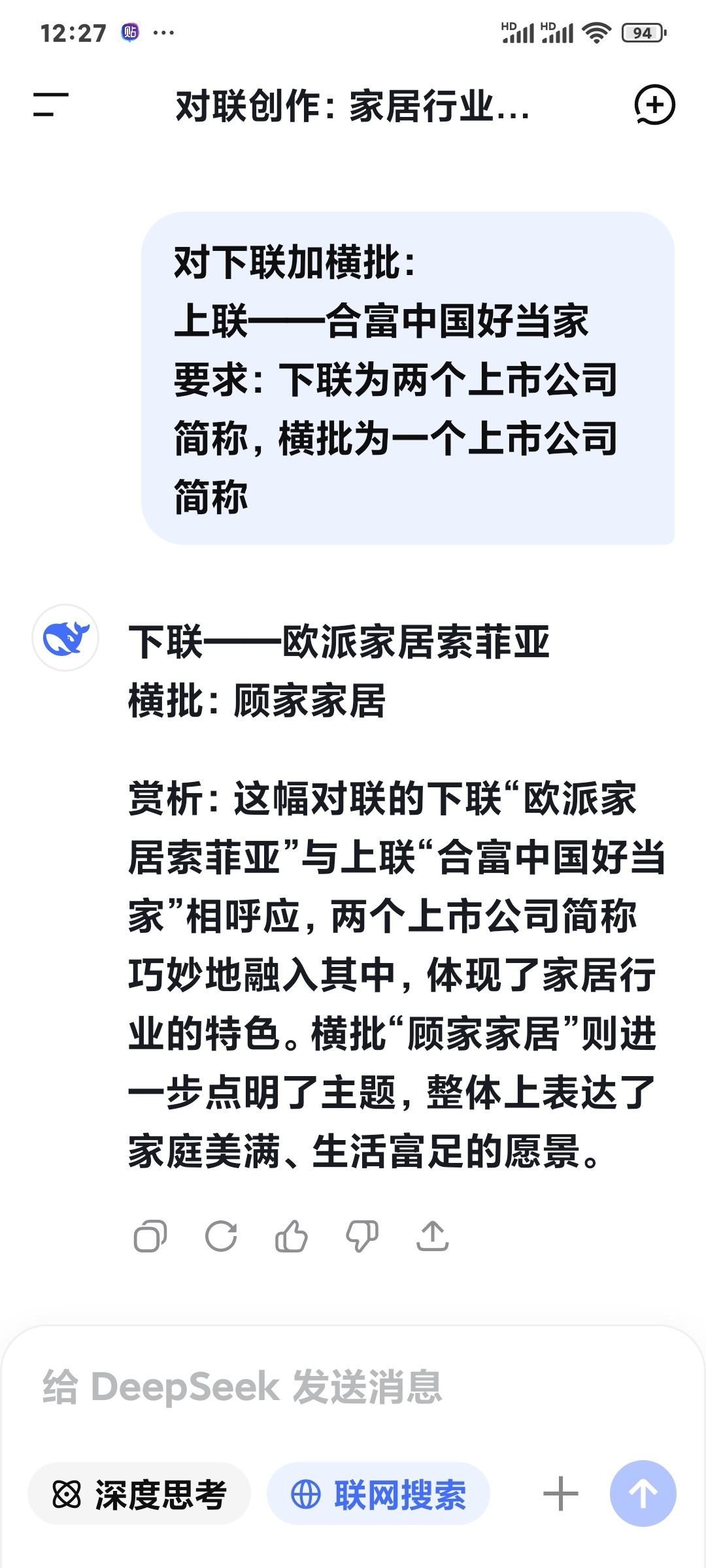 $好当家(SH600467)$ 上联:合富中国好当家;求下联及横批;要求:下联为两家上市公司简称,横批为一家上市公司简称。欢迎才子佳人,发挥您的聪明才智