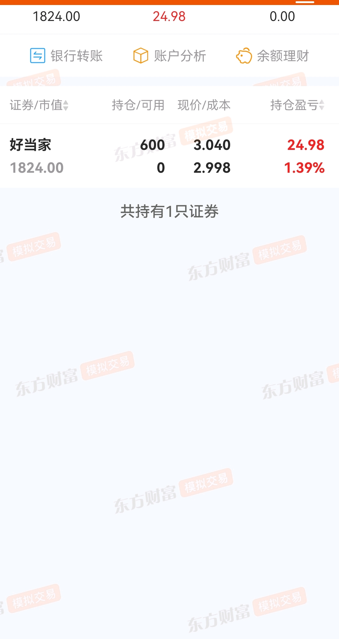 $好当家(SH600467)$ 挑战2k变200k第一天
