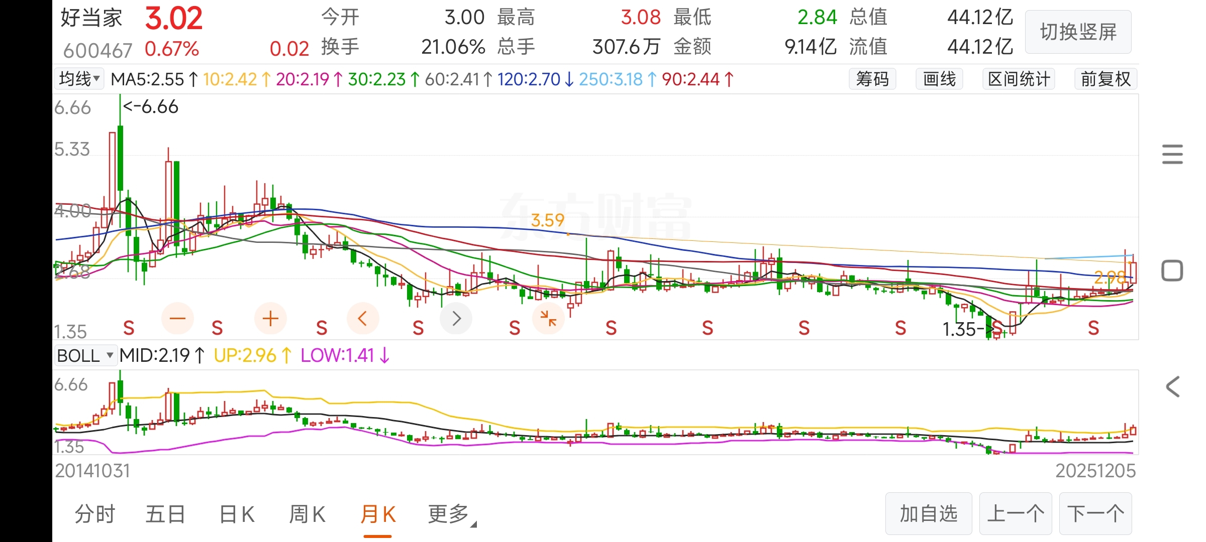 $好当家(SH600467)$ 月线看非常标准点头肩底反转形态,如果明天有下探是非常好的买点,回落再补