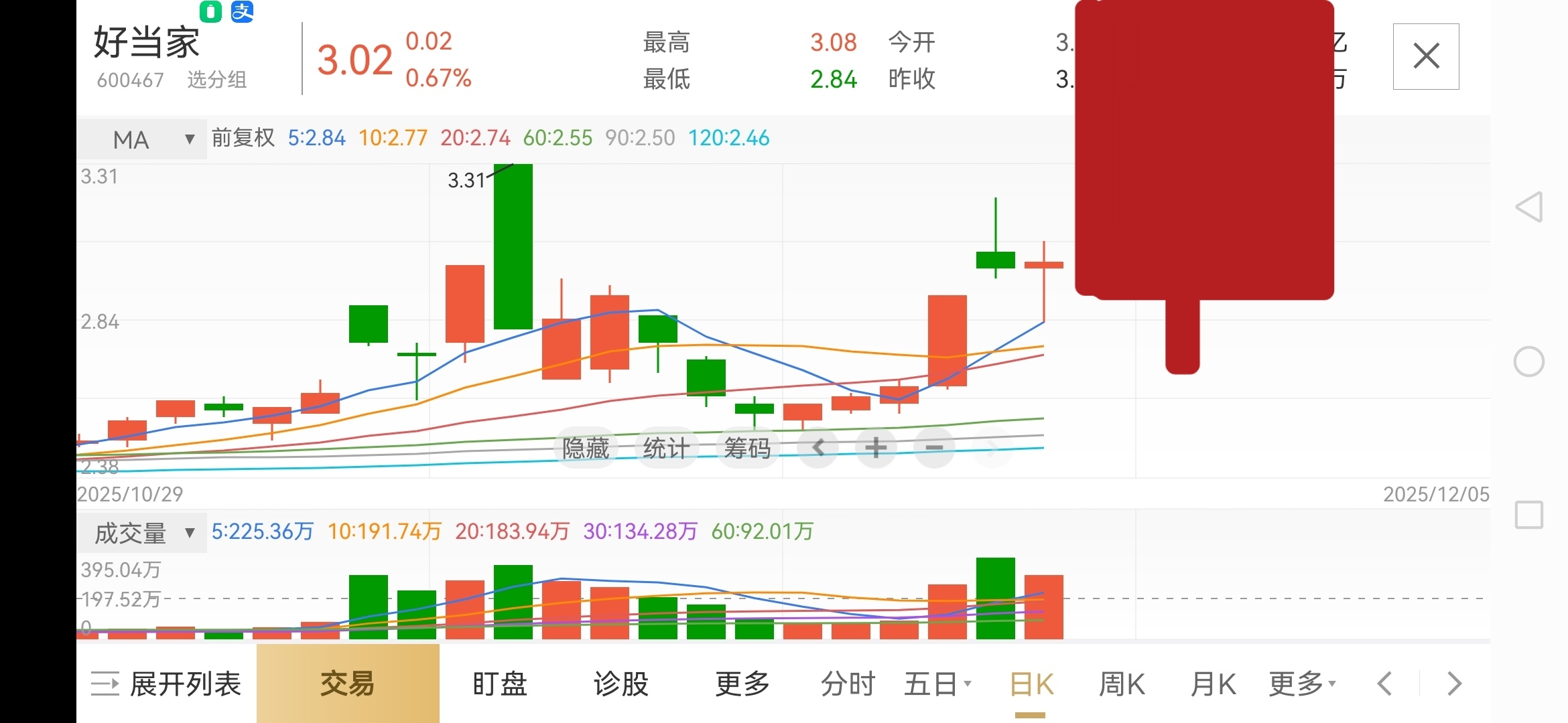 $好当家(SH600467)$ 兵无常势水无常性,要能因敌之变化而取胜者,谓之神。故五行无常胜,四时无常位,日有短长,月有死生。,好当家未来十几天,甚至12月底,都没有上涨行情了…………估计明年6月份才会涨一点