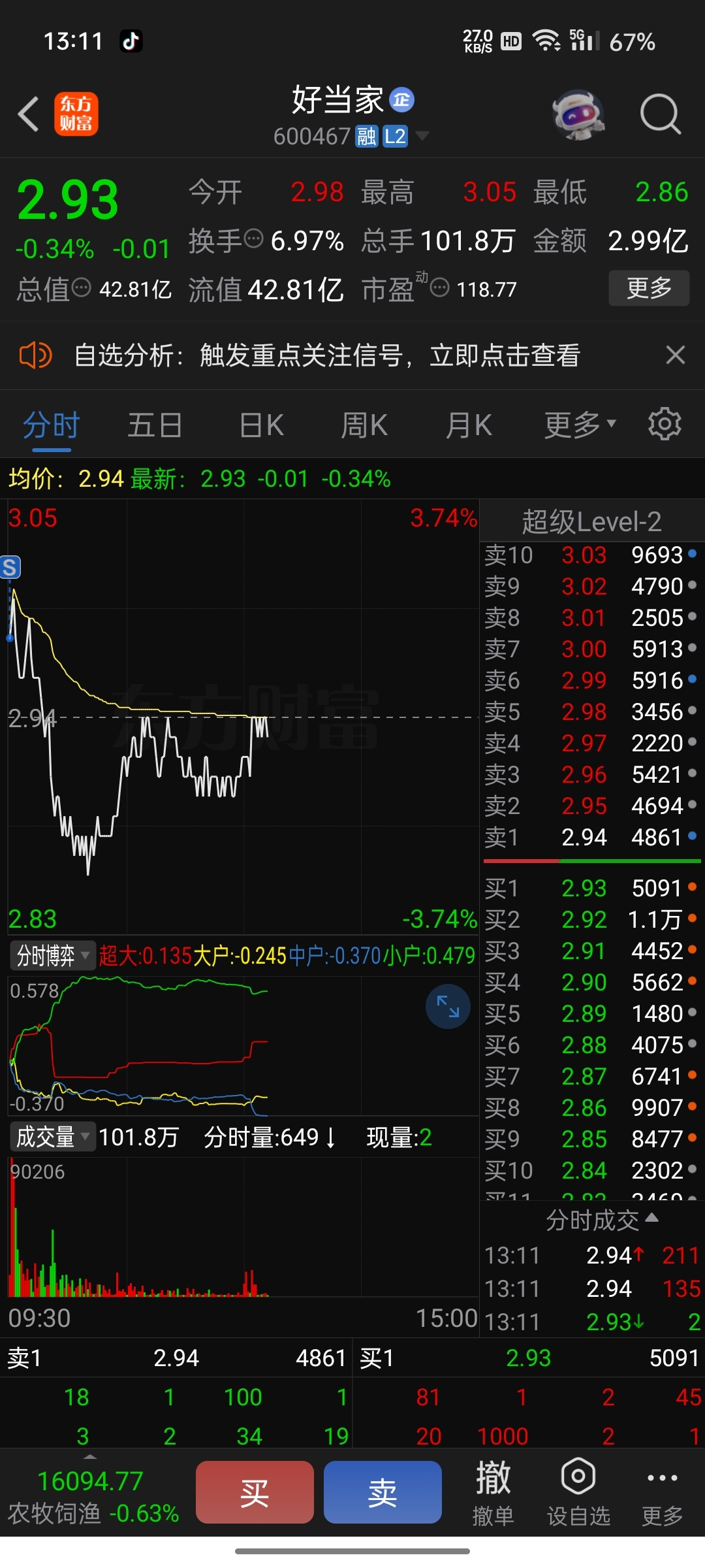 $好当家(SH600467)$ 兄弟们,要不要买回来?