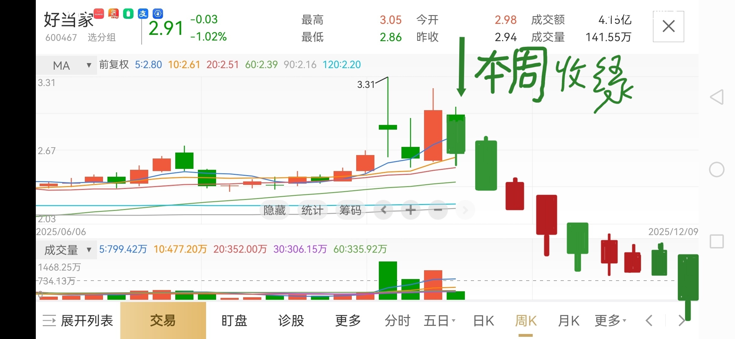$好当家(SH600467)$ 好当家未来走势推演,这里面的这个主力孙子操盘手拉一下,跌几天,根本不配坐庄,强烈建议把合富中国的主力换过来,把这个苟东西踢出去…………没有实力,没有格局,本人坐等2.03附近上车……………不构成个人投资建议,纯属个人观点,看法,想法………不要怪………