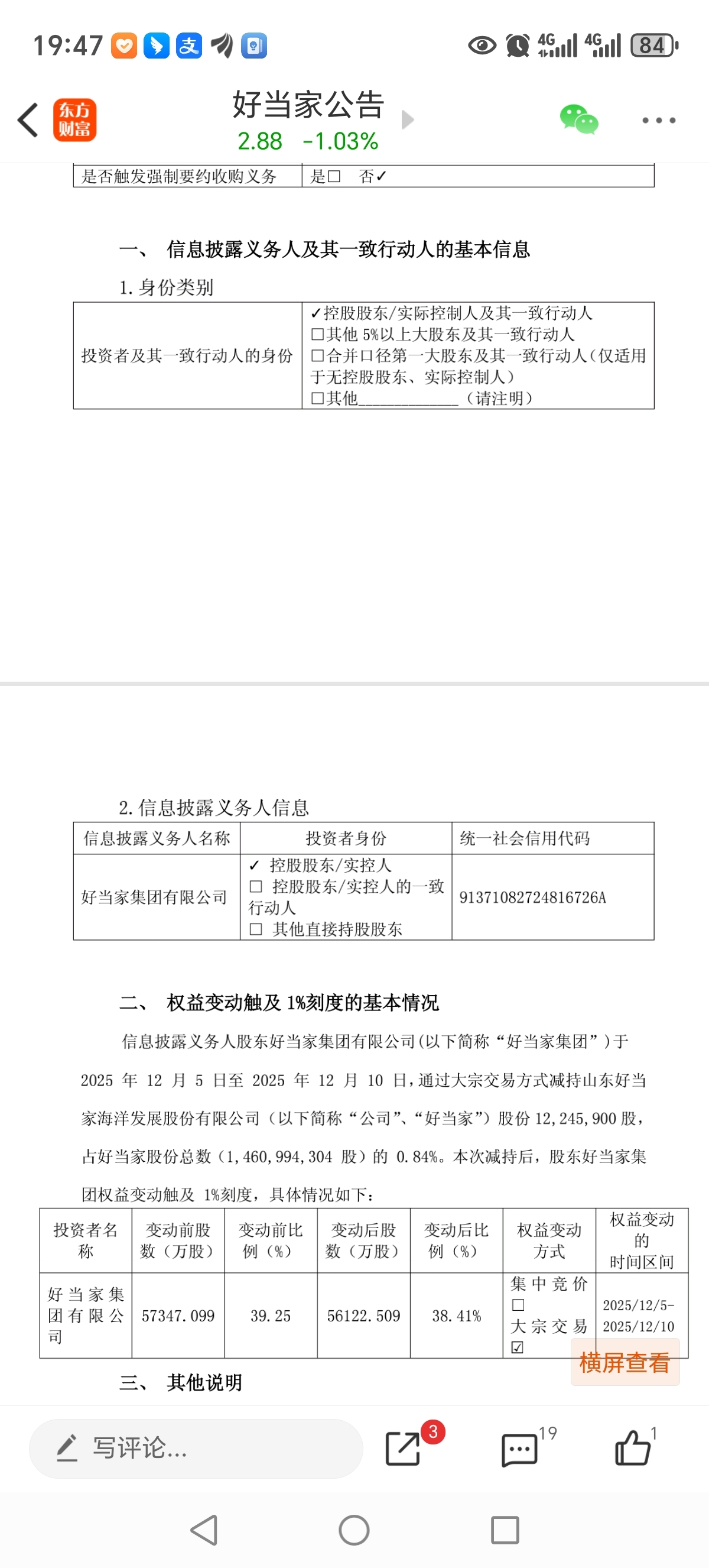 $好当家(SH600467)$ 自己看图,大宗交易,公告写的清清楚楚,有些人还说减持完。