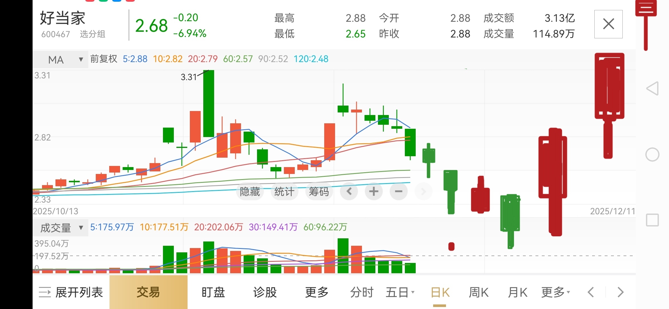 $好当家(SH600467)$ 还没有跌透,就像下雨一样,没有把大地滋润到位,还要大跌几天,回调企稳后会不会横盘震荡就不知道了,应该会拉几个涨停板……