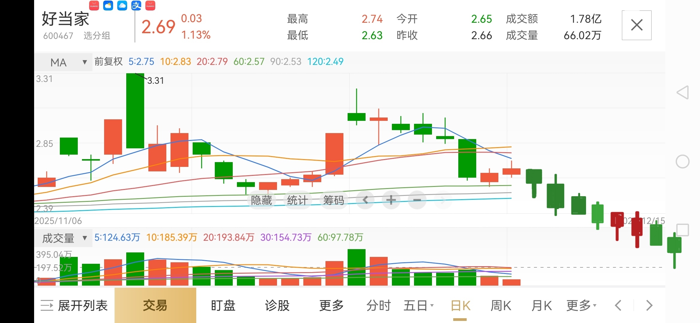 $好当家(SH600467)$ 明天开盘低开5个点左右…………