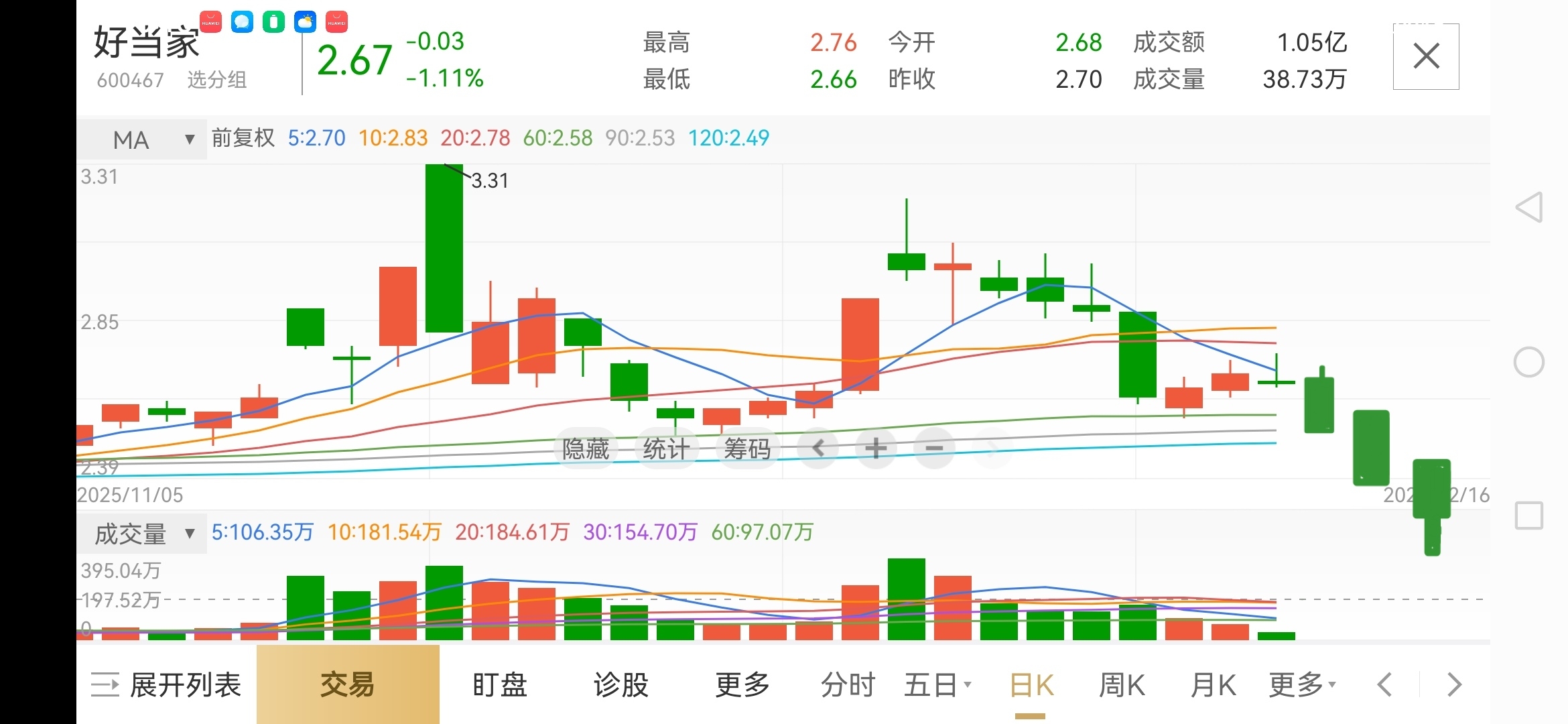 $好当家(SH600467)$ 还没有跌透………2.3左右可以买进3成仓位