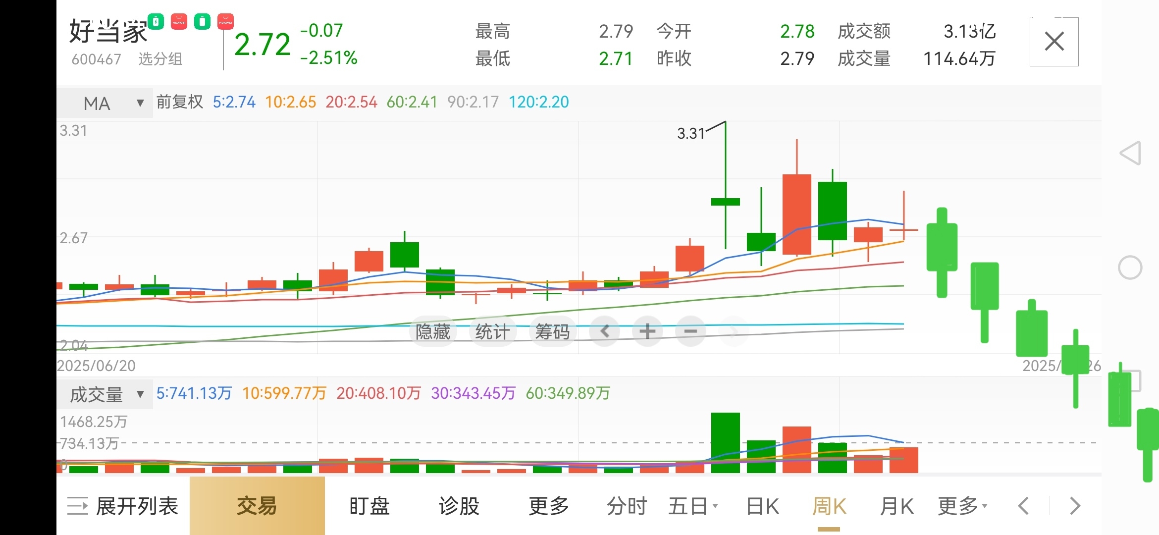 好当家未来走势图模拟推演图………不知道接下来会怎么样,还是要减持底线,不到2.3