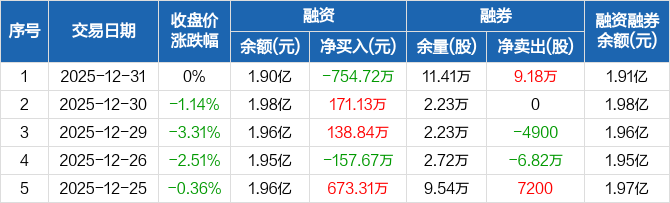 好当家:融资净偿还754.72万元,融资余额1.9亿元(12-31)