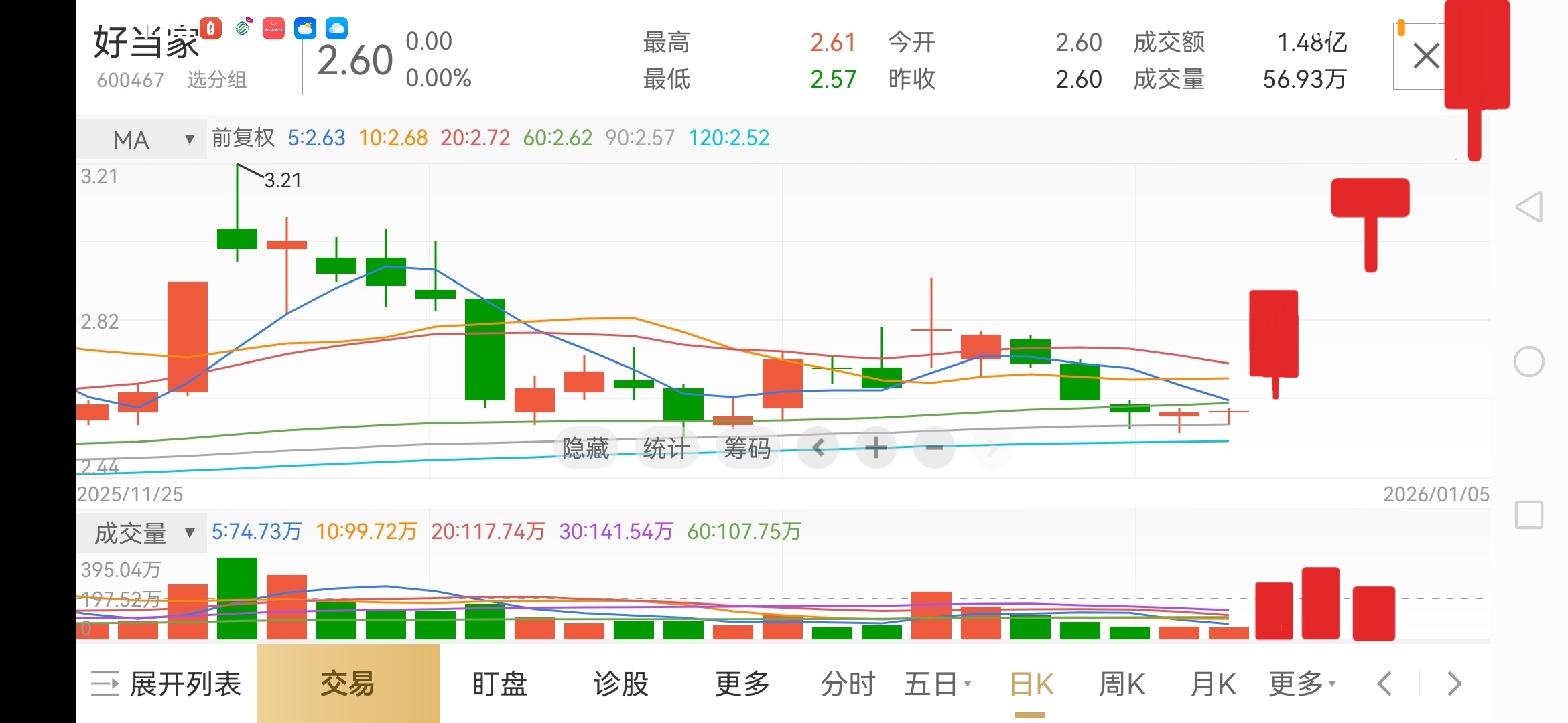 $好当家(SH600467)$ 洗盘吸筹建仓控盘,马上拉升启动了,主升浪,明天开始数涨停板………至少50个涨停一字板………散户猪高兴了…………