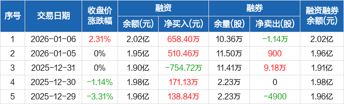 好当家:融资净买入658.4万元,融资余额2.02亿元(01-06)