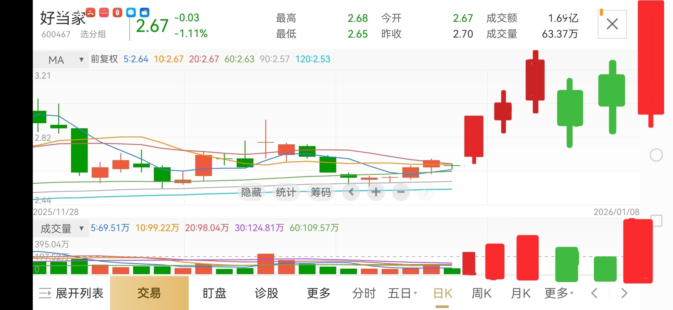 $好当家(SH600467)$ 我为散户打打气,马上主升浪开始了,后面要8800个涨停板,9600个一字板涨停,