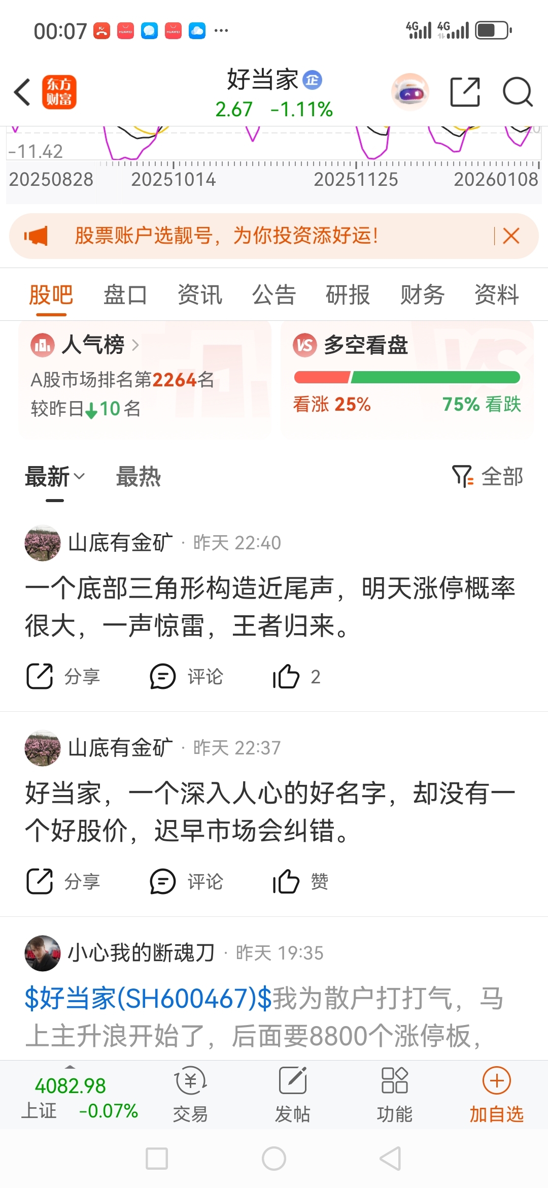 温馨提示: 1.根据《证券法》规定,禁止编造、传播虚假信息或者误导性信息,扰乱证券市场;2.用户在本社区发表的所有资料、言论等仅代表个人观点,与本网站立场无关,不对您构成任何投资建议。用户应基于自己的独立判断,自行决定证券投资并承担相应风险。《东方财富社区管理规定》