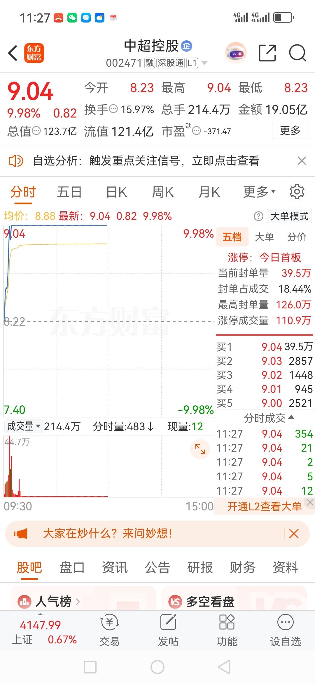 $好当家(SH600467)$ 我都买了几千万股,牛不牛……岩山2000万股,中超3000万股,利欧6000万股,今天彻底清仓好当家,换别的股票,以后好当家再也看不到我的影子,偶尔会看到,可能只是过来羞耻一下好当家里面的盘猪