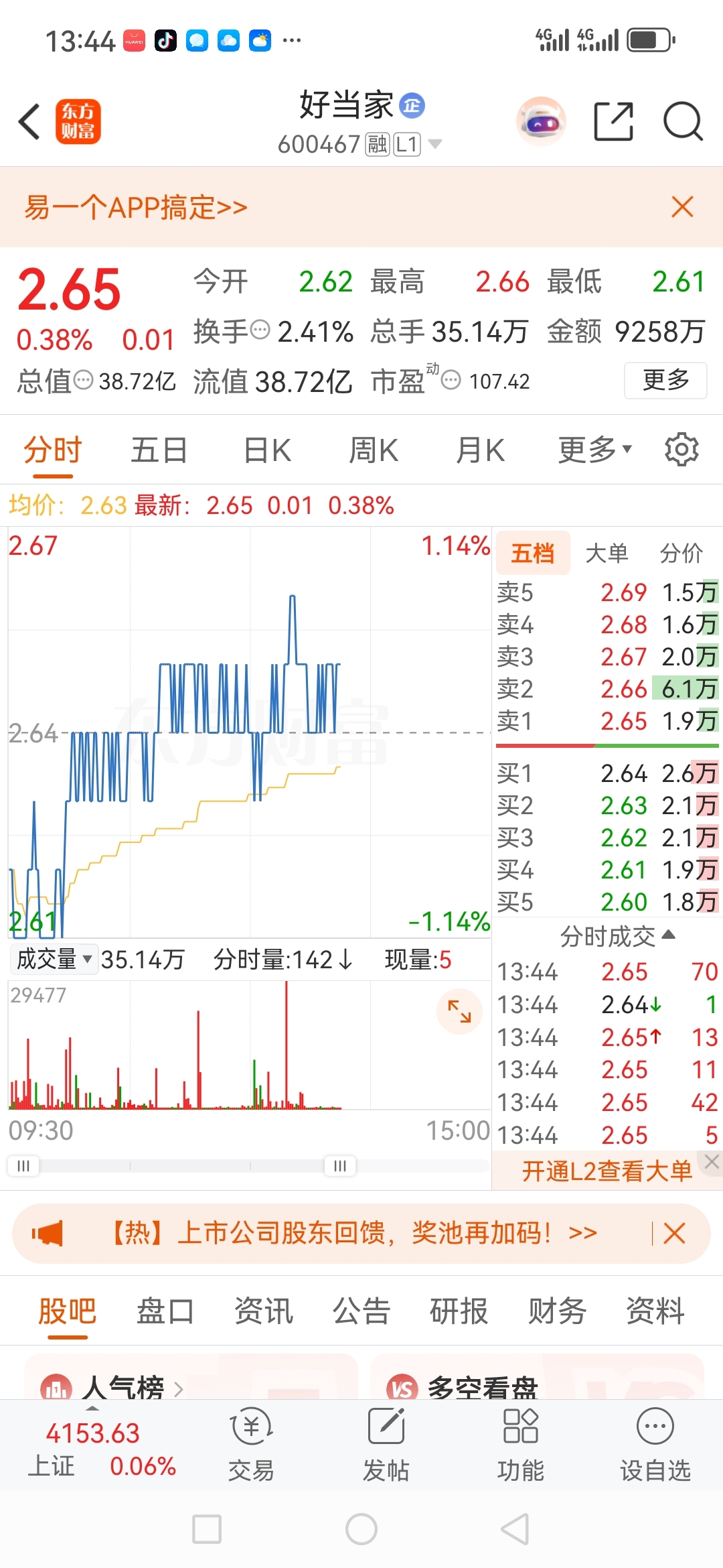 $好当家(SH600467)$ 全是套牢盘,量化盘,回来收割