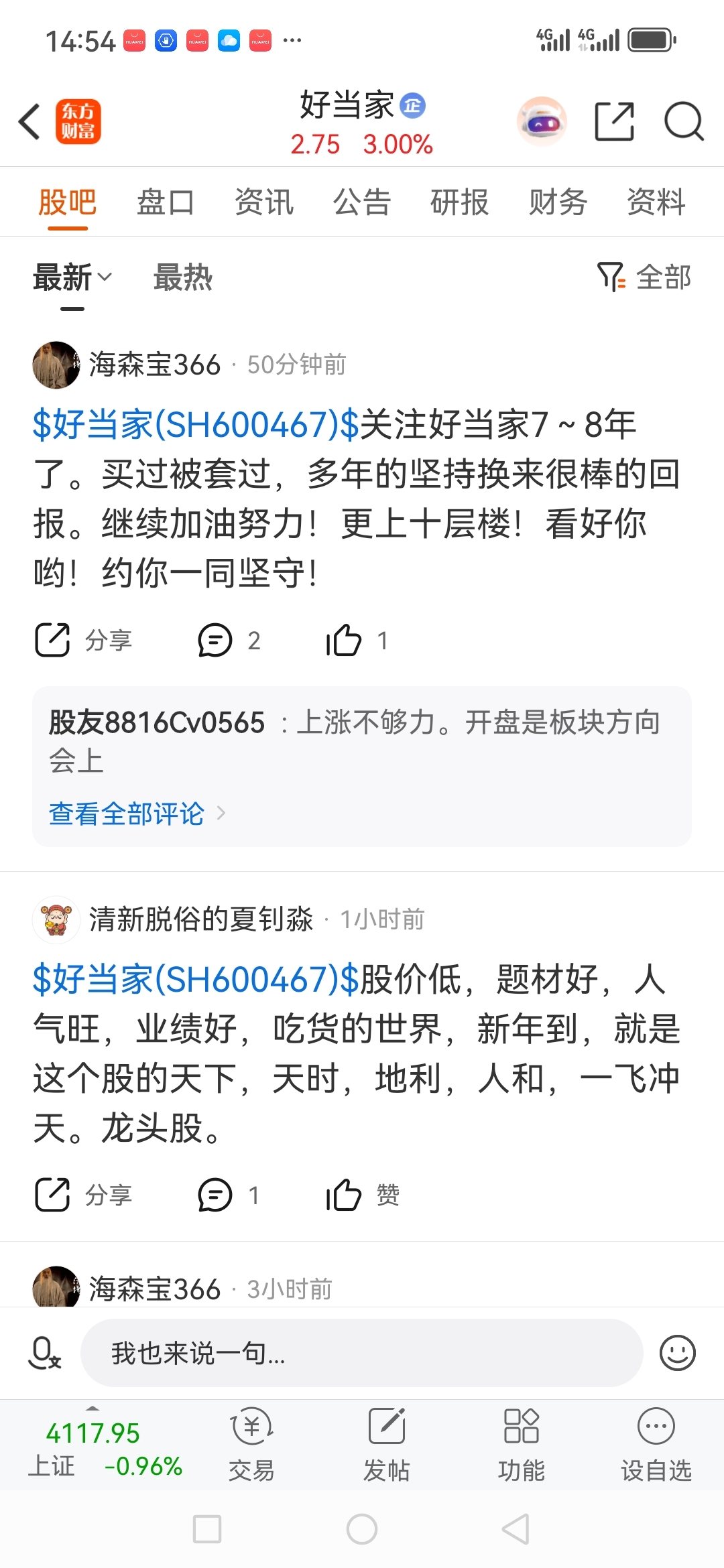 温馨提示: 1.根据《证券法》规定,禁止编造、传播虚假信息或者误导性信息,扰乱证券市场;2.用户在本社区发表的所有资料、言论等仅代表个人观点,与本网站立场无关,不对您构成任何投资建议。用户应基于自己的独立判断,自行决定证券投资并承担相应风险。《东方财富社区管理规定》