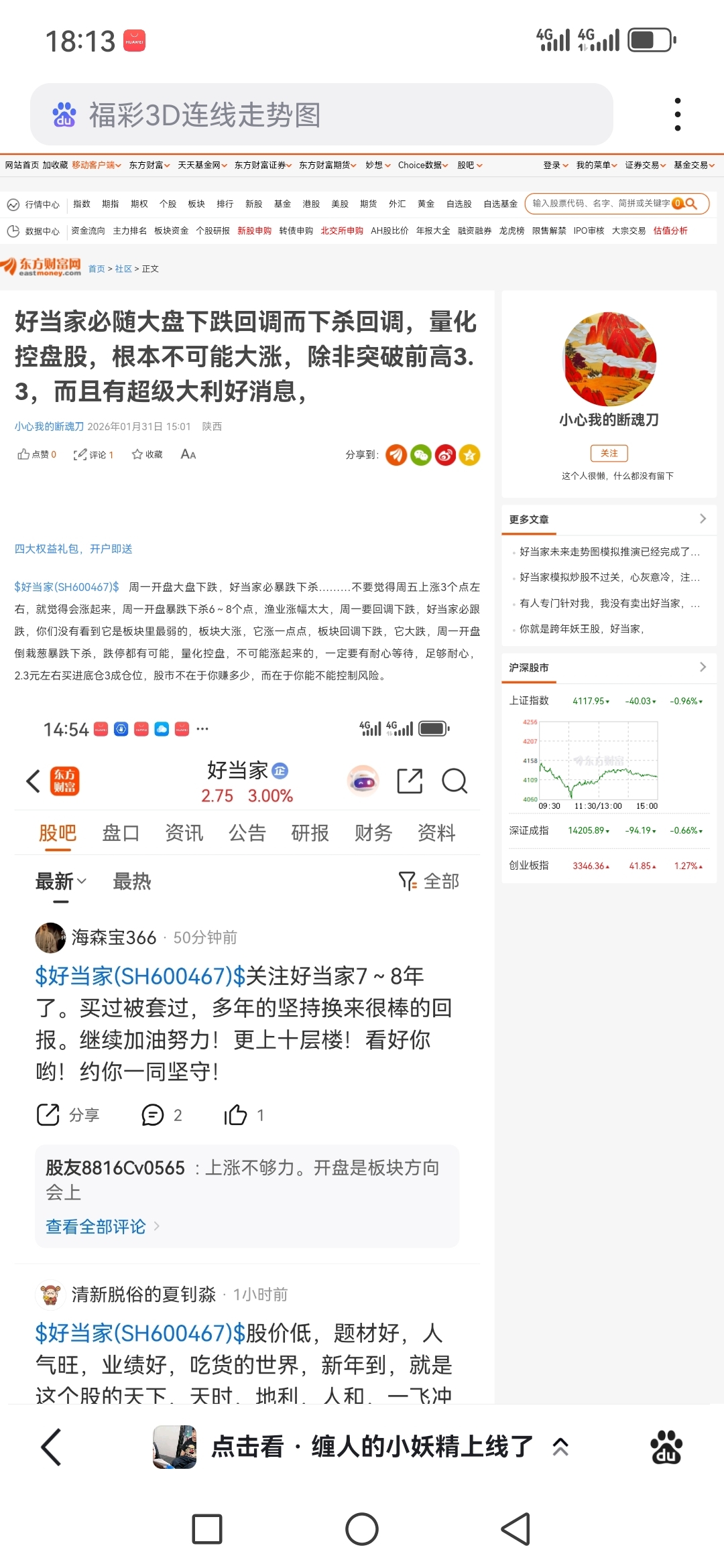 $好当家(SH600467)$ 我成名了,发的贴上百度了………