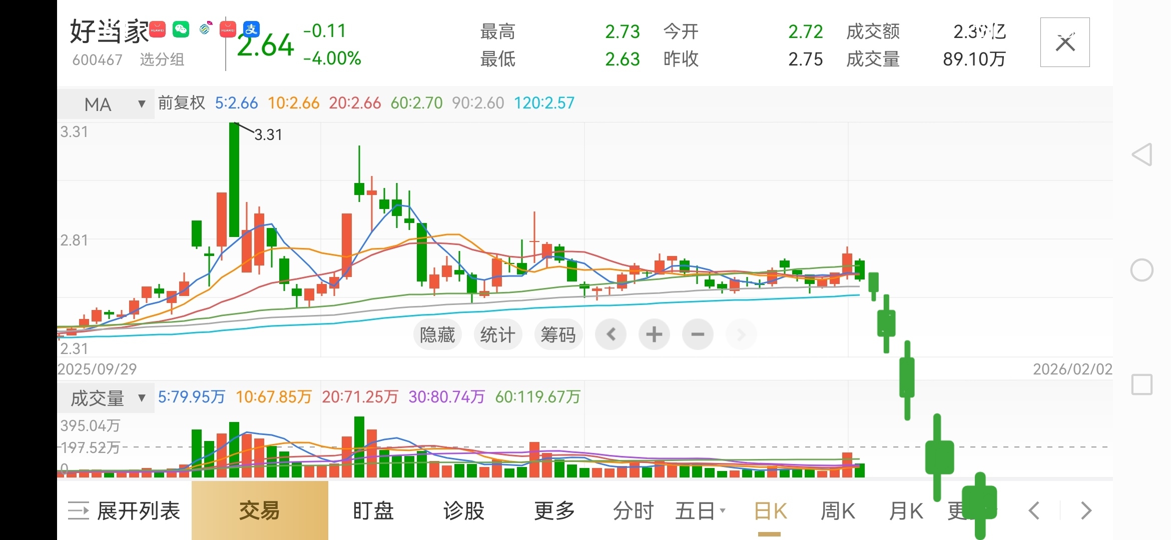 $好当家(SH600467)$ 希望明天开盘倒栽葱暴跌下杀,跌8个点,我买200股,周三开盘一字板跌停,我就买500股,周四开盘暴跌下杀跌停板我就买1000股,周五跌停,我再买500股,往后就是一个跌停,加仓500股,一直加到1.5元,钱不够,工厂打工加仓猛干………希望你狠狠的暴跌下杀……基本上空仓……