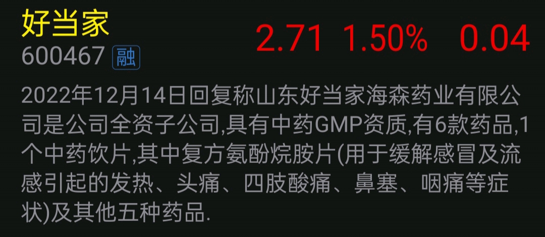 $好当家(SH600467)$