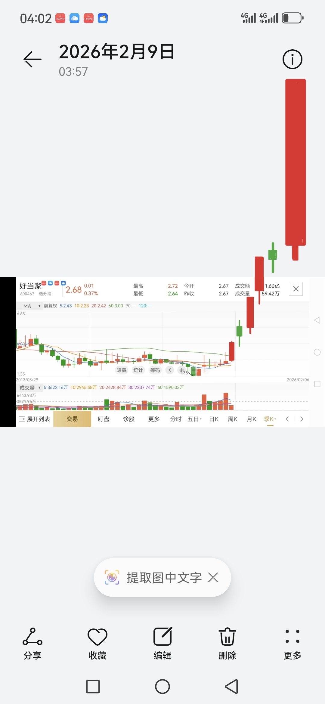 $好当家(SH600467)$ 我再次为散户猪兄弟打气,加油猛干,买买买………买买买买买买买买买买买买买买88元见,好当家未来3年必破88元………好股,牛后688个一字板涨停