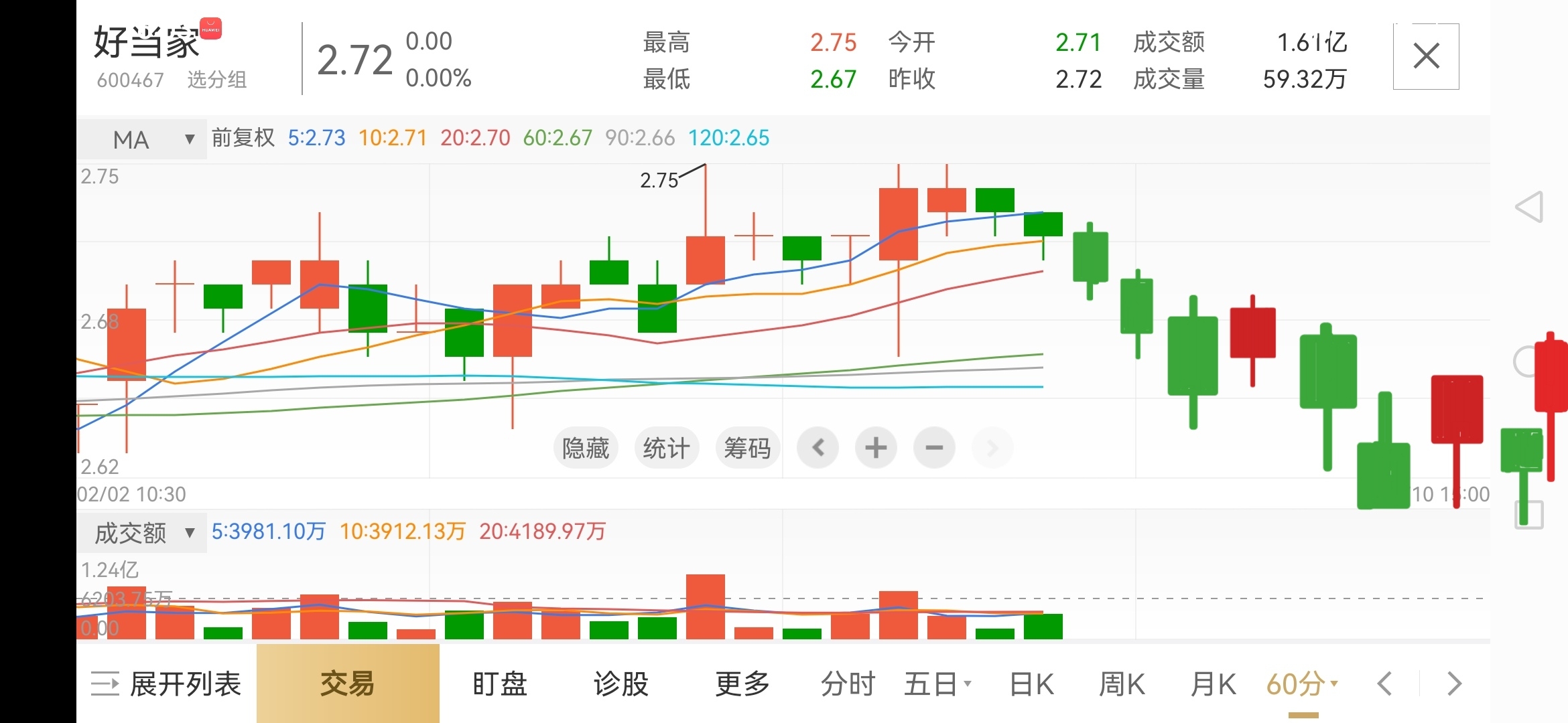 短线这几天可能这样走………未来3~6个月,好当家必然震荡为主………2.6~2.7
