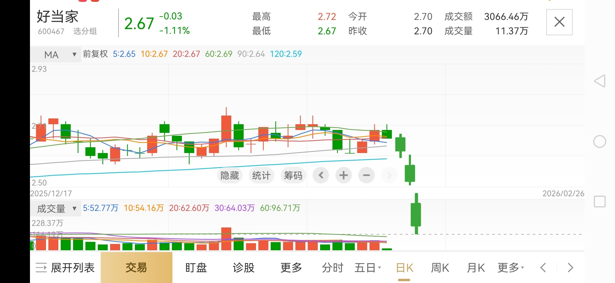 $好当家(SH600467)$ 乖乖的暴跌下来………1.09元我的最爱