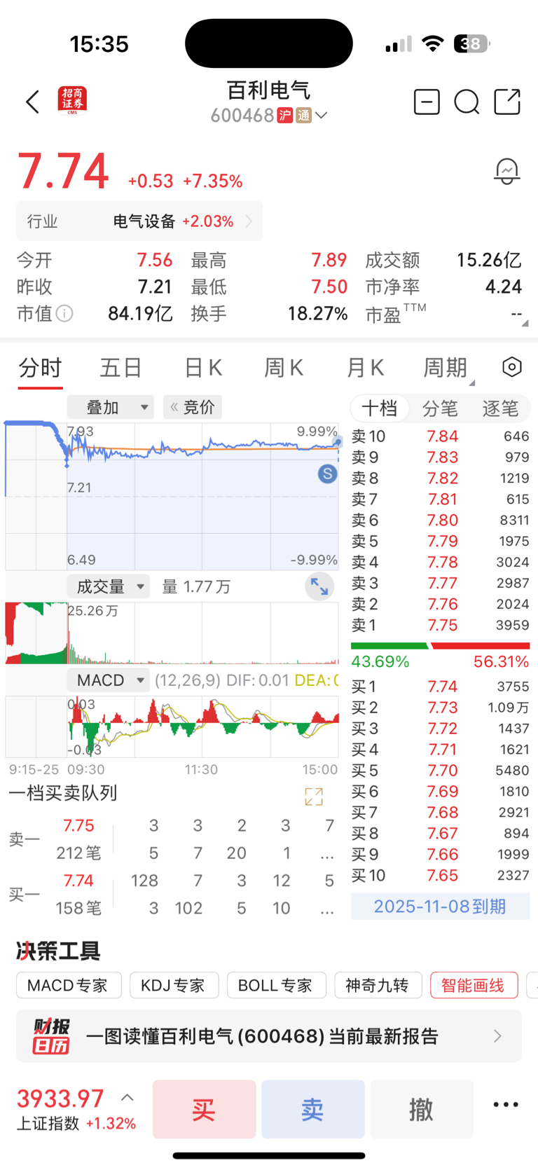 $百利电气(SH600468)$ 庄太弱了,先离场观察