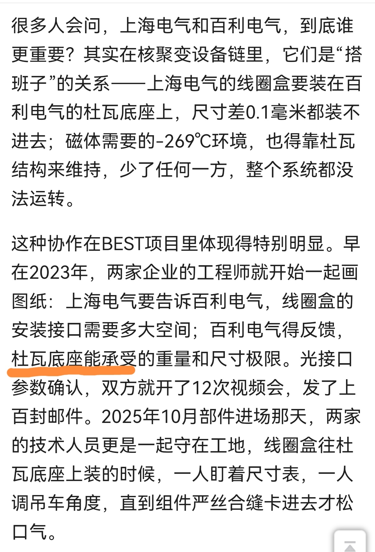 $百利电气(SH600468)$ 分工协作,上海电气与百利电气,冰与火交融,百利电气杜瓦底座的底气,