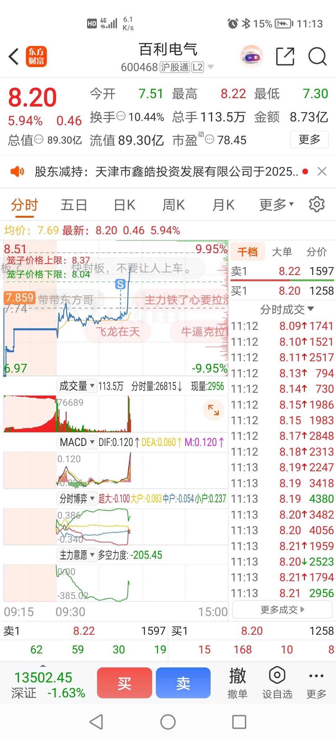 $百利电气(SH600468)$ 我想静静