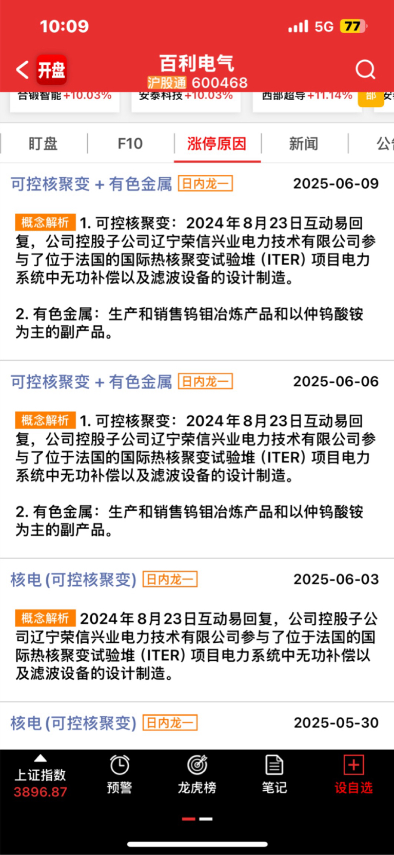 $百利电气(SH600468)$ 3400点股价最高9.64元,现在3920点不上10元,算是核聚变龙一???大盘白涨500点了