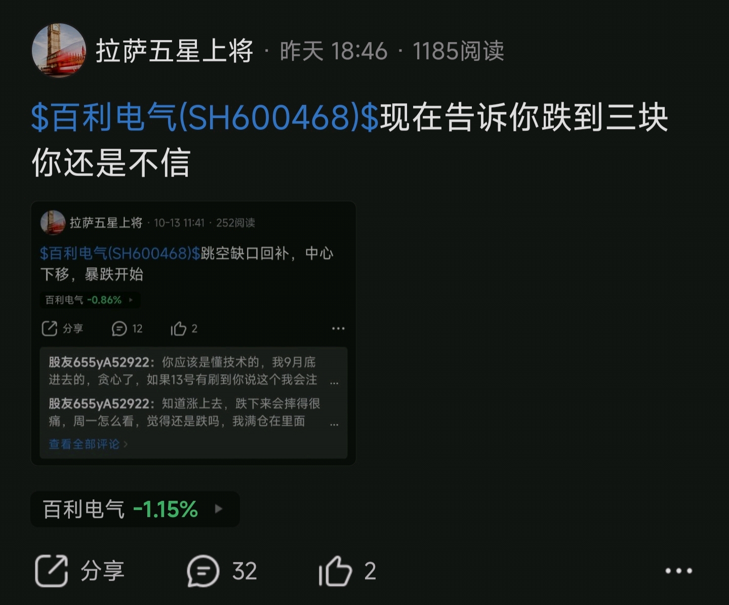 $百利电气(SH600468)$ 昨天的小丑继续出来对线,到时候吃你带血的筹码,哈哈哈