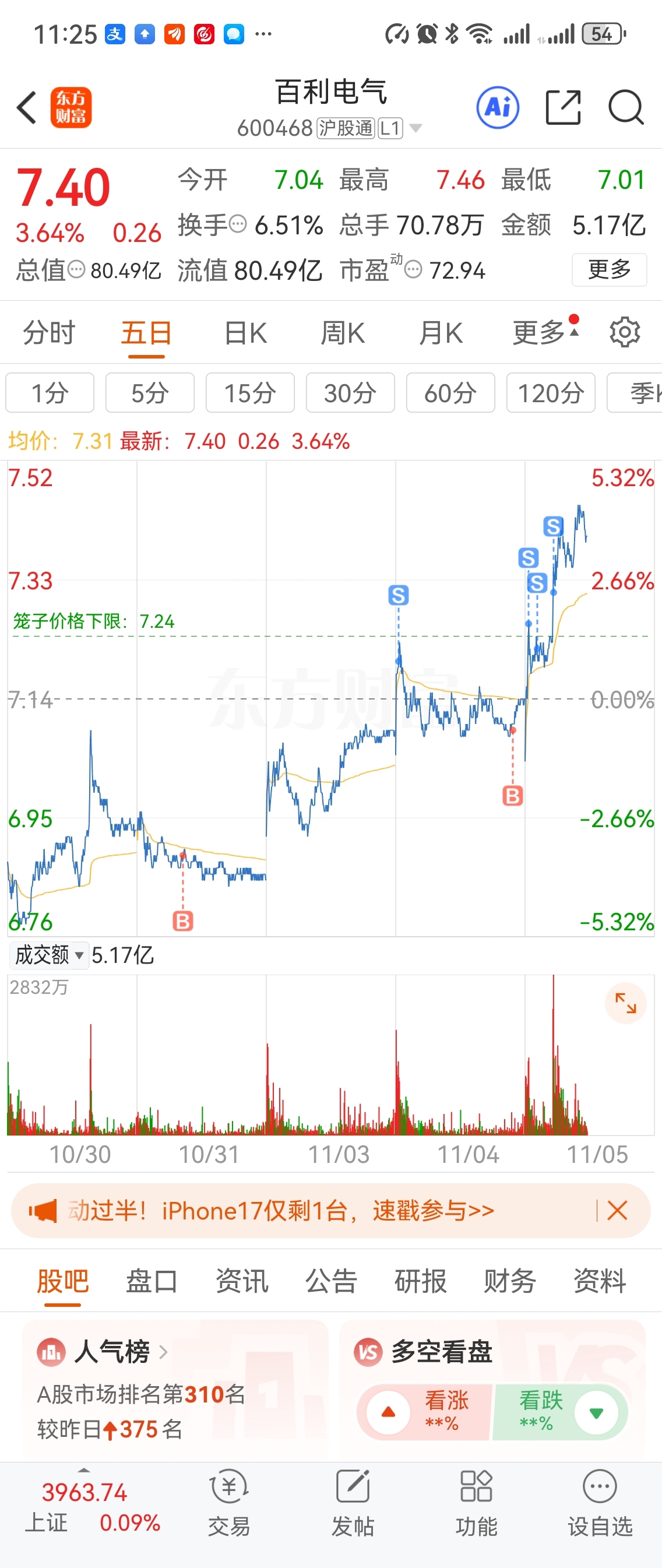 $百利电气(SH600468)$ 筹码都交出来了,主力可以尽情的拉了