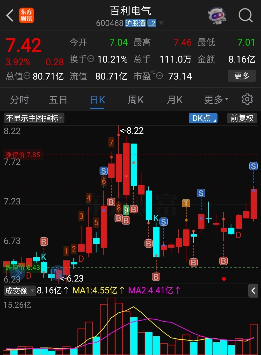 $百利电气(SH600468)$ 做了两波,小赚六千走了,祝在车上的各位发财。