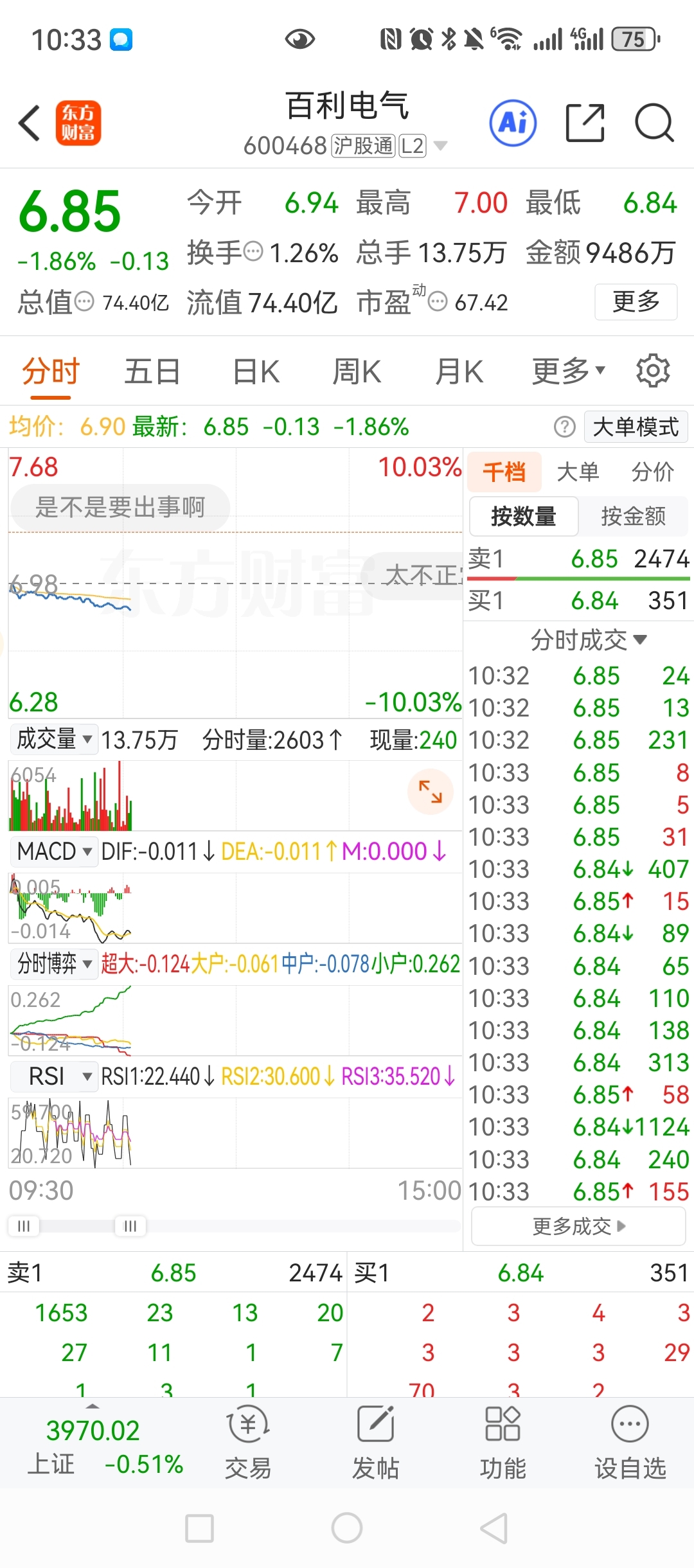 $百利电气(SH600468)$ 破60日均线了!!!!这垃圾