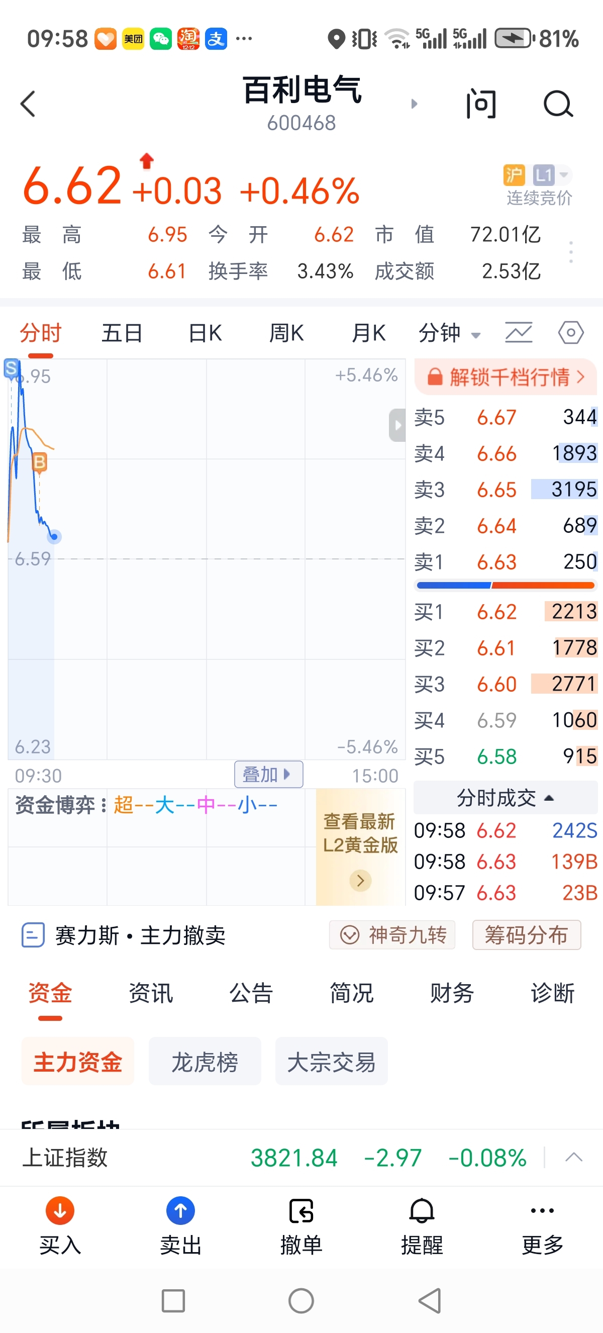 $百利电气(SH600468)$ 这毛,就不能格局下