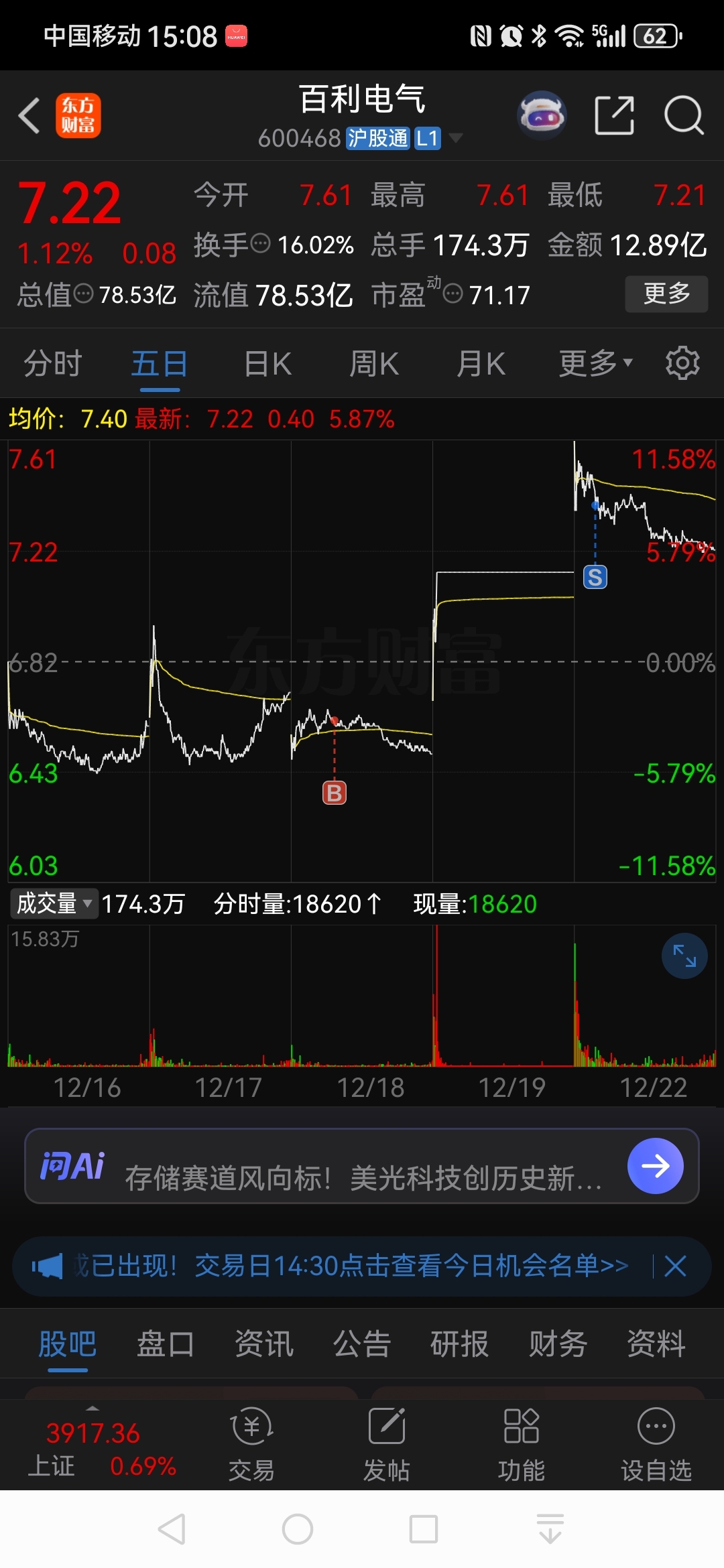 $百利电气(SH600468)$ 跑了,名符其实是百败电气