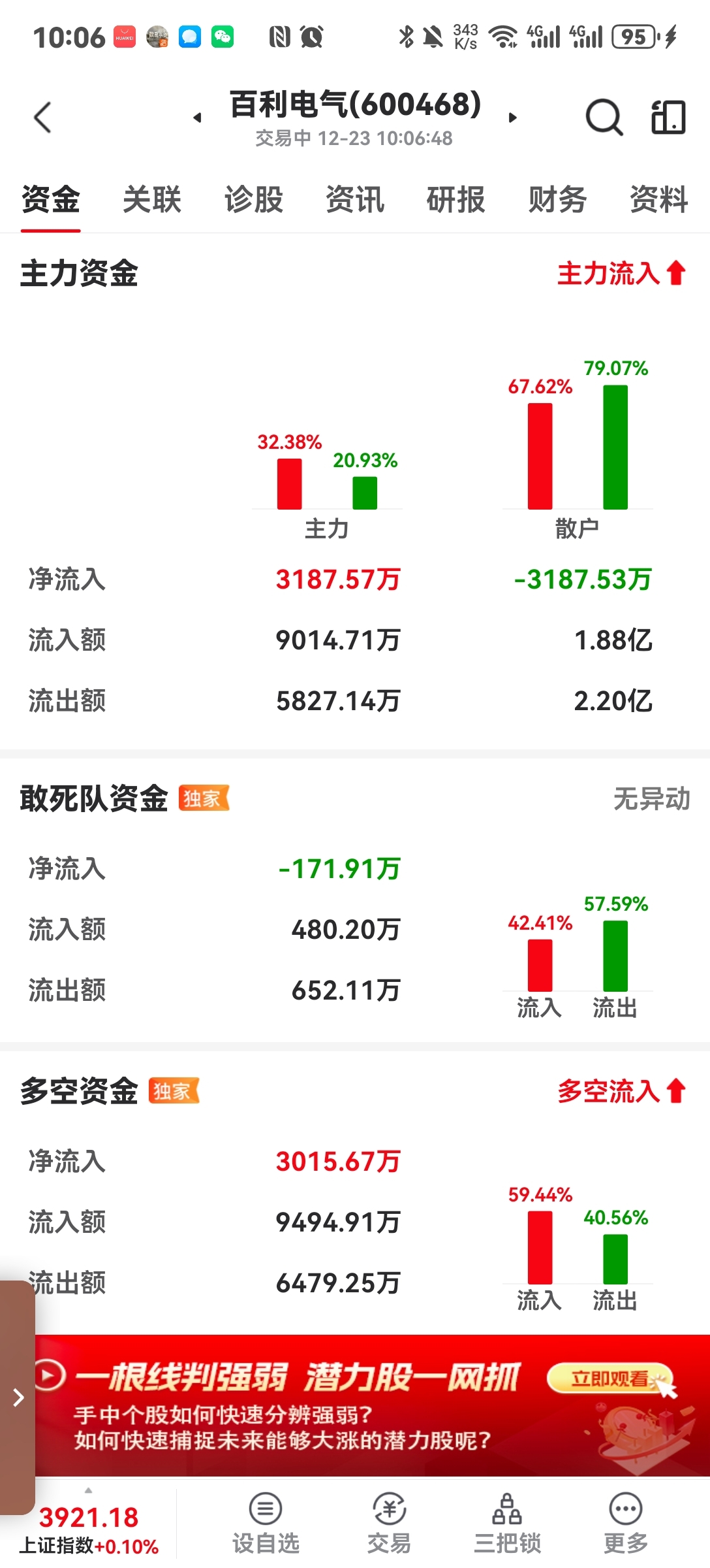$百利电气(SH600468)$ 主力已悄悄的流入6000万,可怜的散户看不到暗盘资金,筹码被骗!