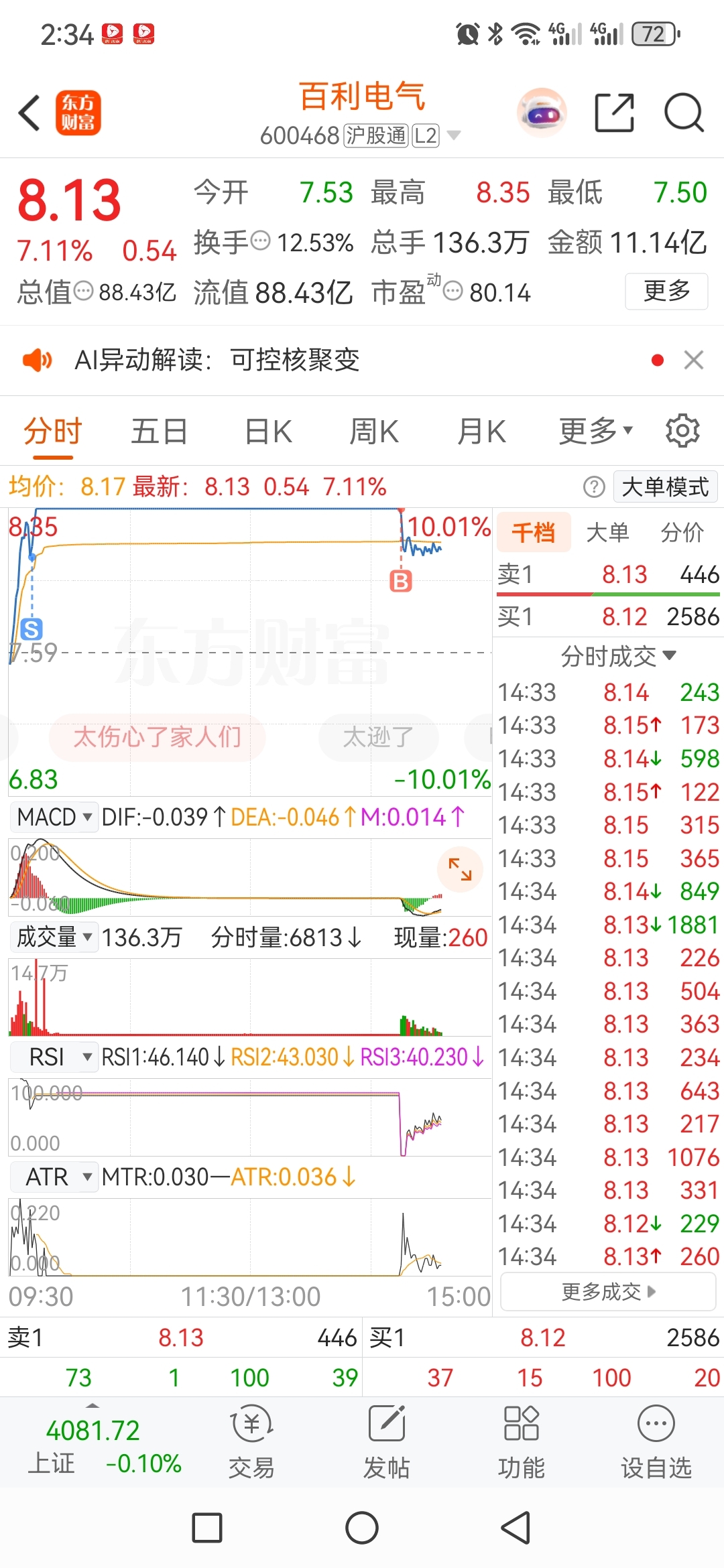 $百利电气(SH600468)$ 看看这个反t怎么样这是造的什么孽啊