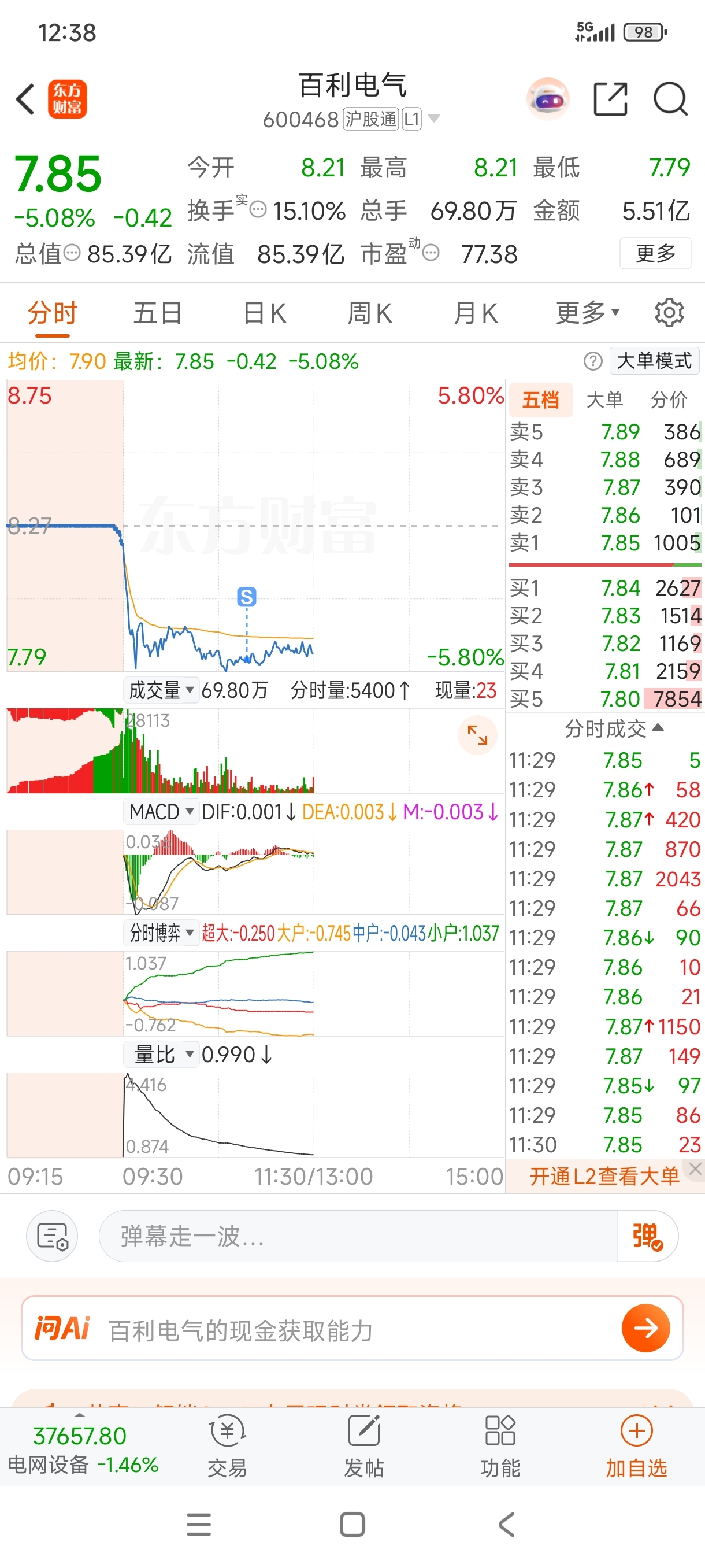 $百利电气(SH600468)$ 玩,昨天追了一下,今天就是大面。不讲武德